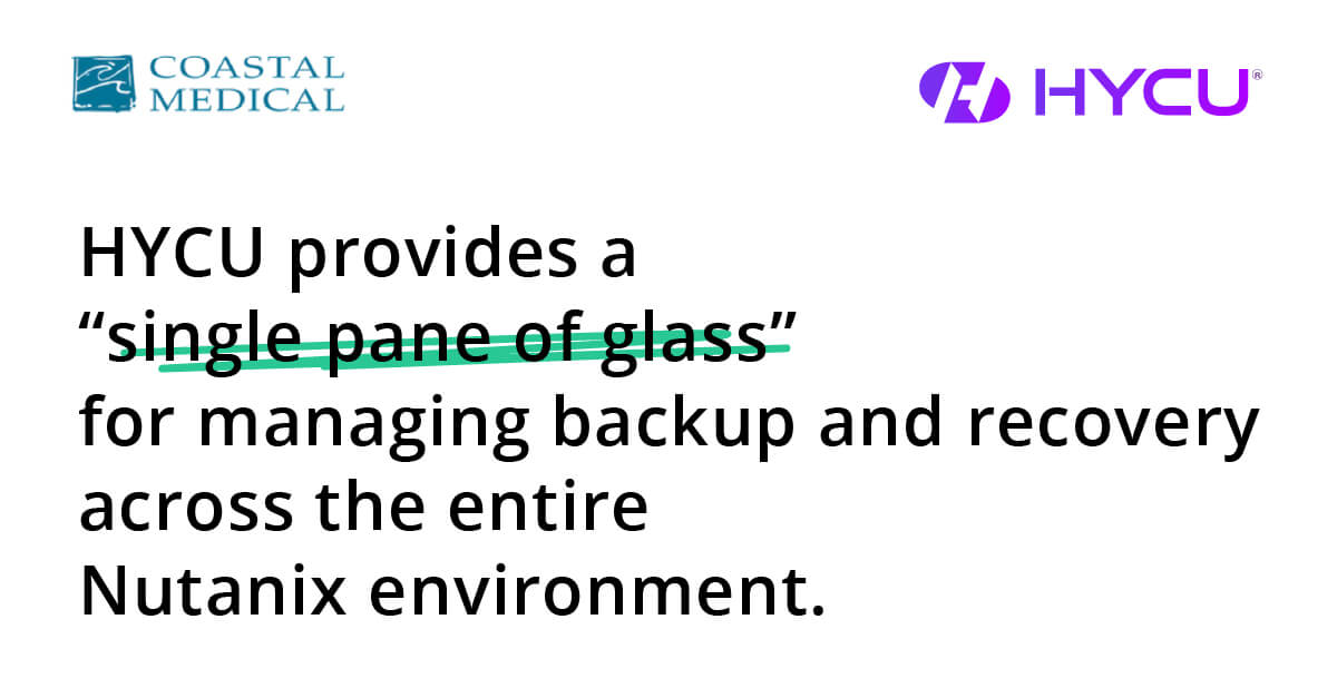 At a Nutanix .NEXT event, Melo was introduced to HYCU. “I saw it and I thought it was amazing,” he recalls, noting HYCU’s simplicity of operation. Anxious to try something different, Melo implemented HYCU in Coastal Medical’s DR facility first to see how it would perform.