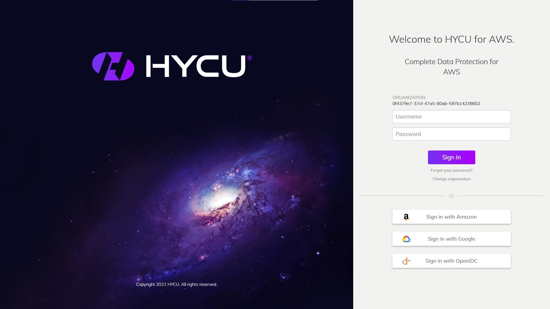 (Accessing HYCU for AWS is as easy as loggin-in)