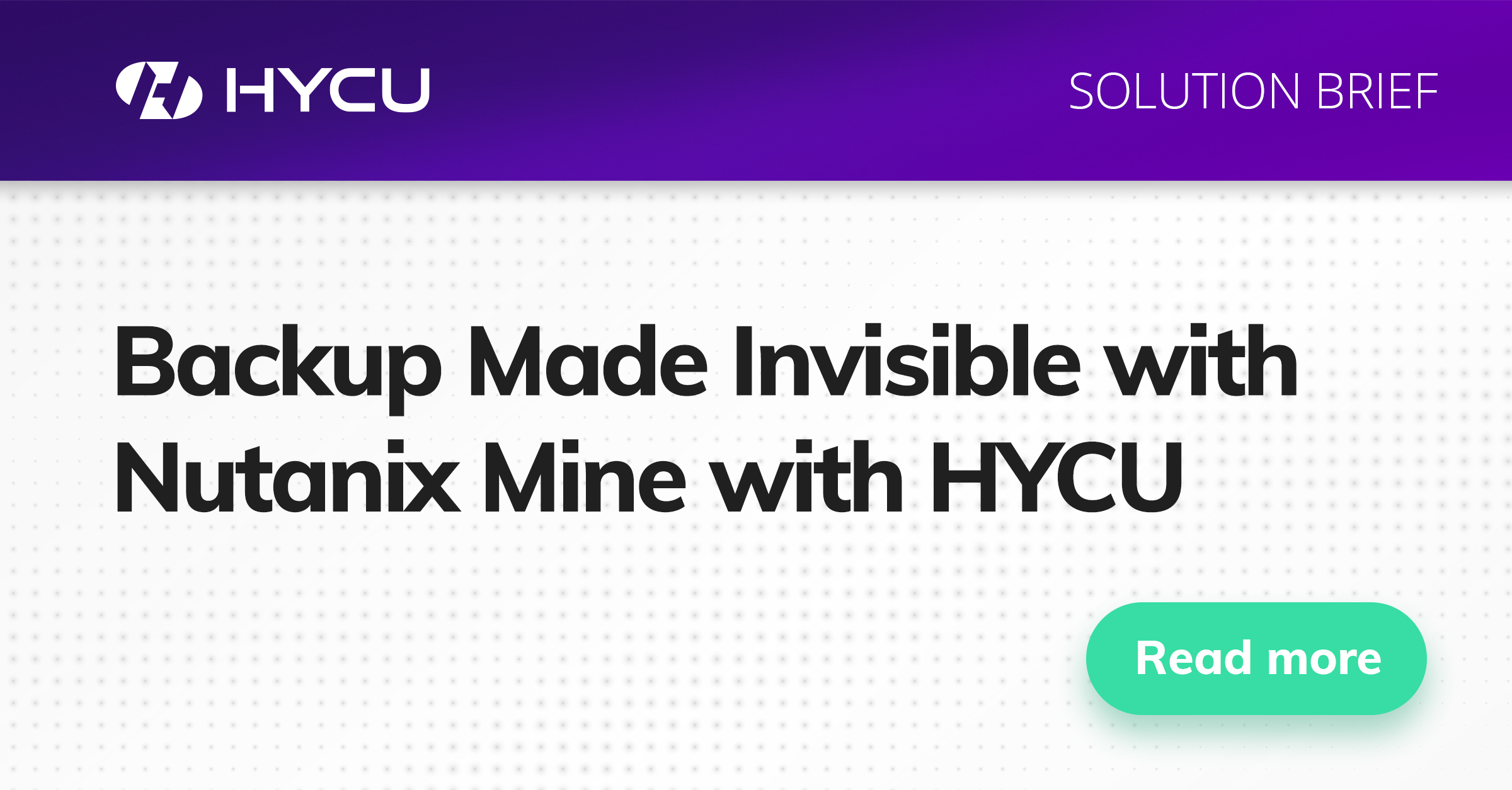 You can read more about Nutanix Mine with HYCU here: Application-intelligent Backup as a Service with Nutanix Mine