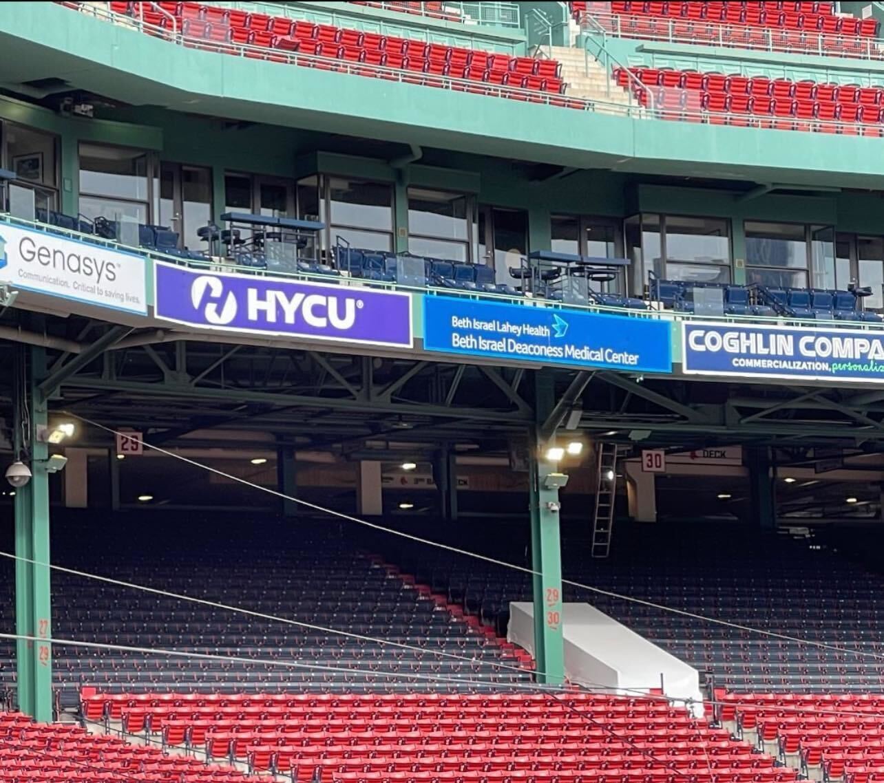 HYCU Purple banner hanging inside Fenway Park