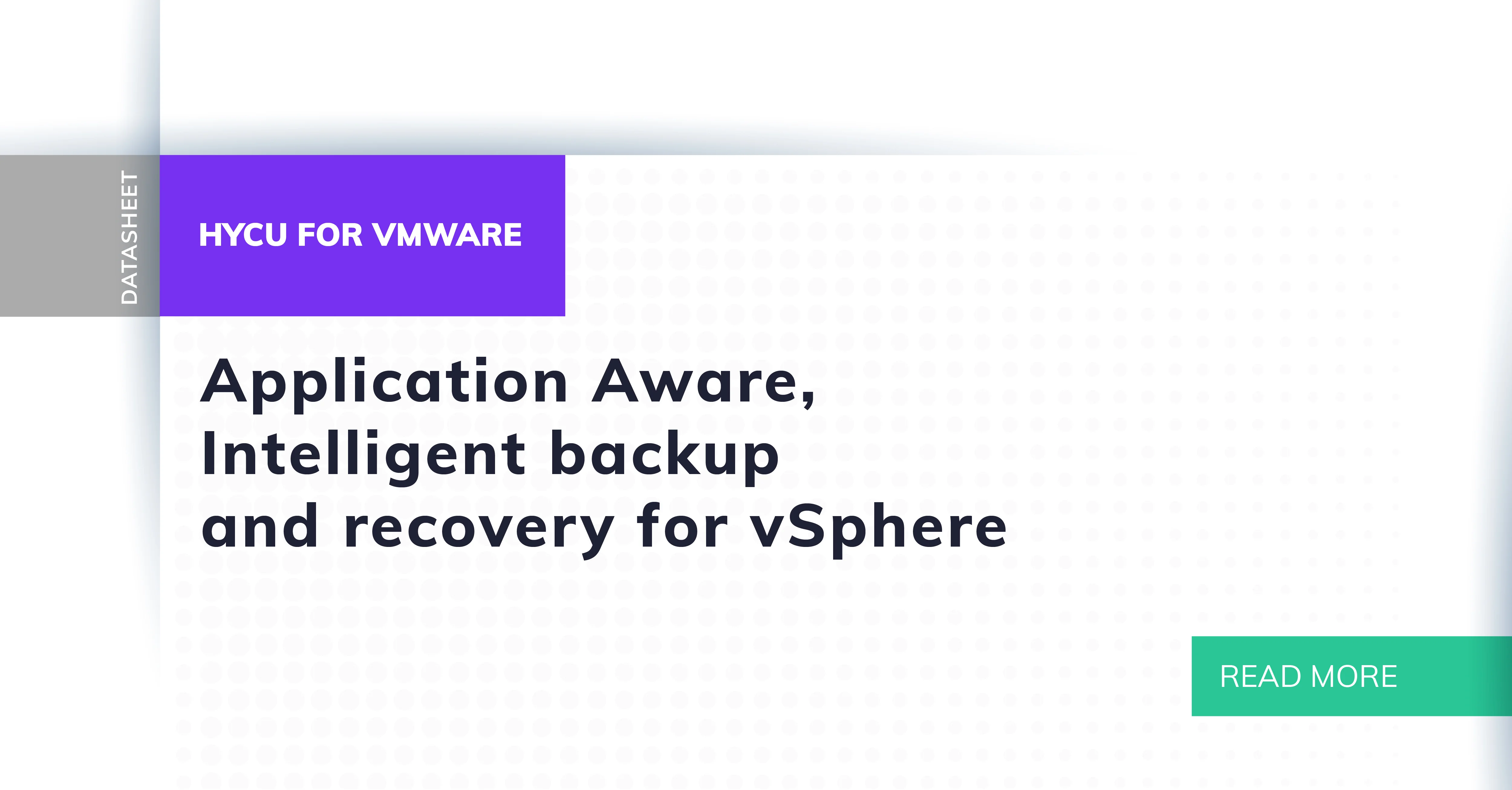 HYCU for VMware is the only Application Aware, Intelligent data protection solution, built ground up with the VMware administrator in mind.