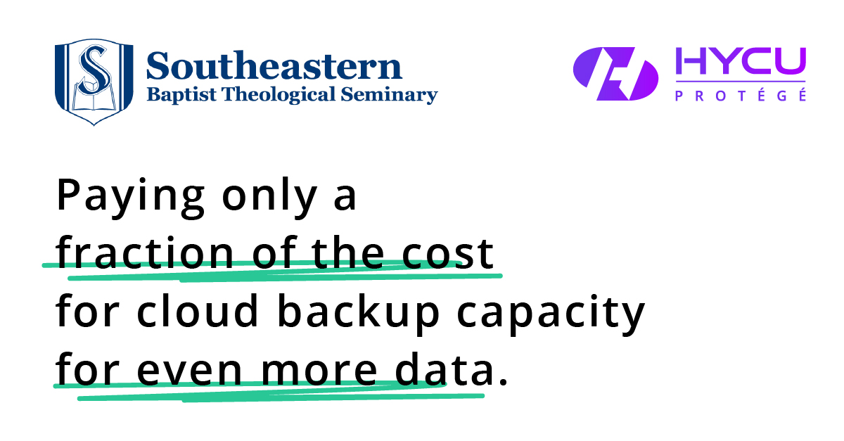 Moving to GCP with HYCU for cloud backups has generated tremendous savings for Southeastern Baptist Theological Seminary. “We are now paying a fraction of the cost for cloud backup capacity for even more data,” Jenks says, noting that he can store 10TB on GCP for about $100 per month, versus $1,400 per month for just 6TB with his previous cloud backup vendor due to overage charges.