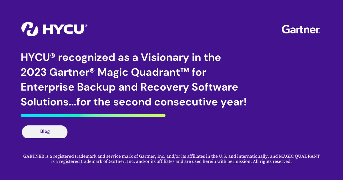 HYCU recognized as a Visionary in the 2023 Gartner® Magic Quadrant™ for Backup and Recovery Software...for the second consecutive year!