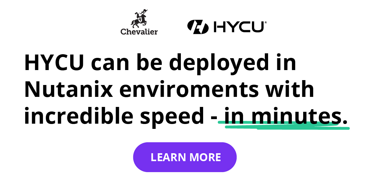 To support the move to Nutanix AHV, the Chevalier IT team evaluated other solutions for the backup of Nutanix AHV, including HYCU.