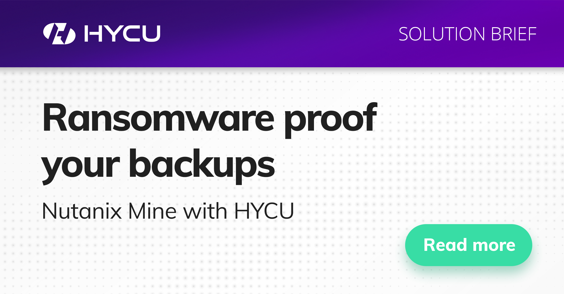 HYCU paired with Nutanix Mine can help to secure your backups using three simple techniques:
