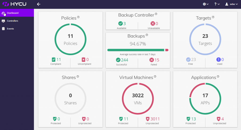 - Consolidated view across multi-site deployment: The good thing about HYCU is that it is extremely simple to deploy and a single deployment of HYCU can manage multiple Nutanix and VMWare clusters. That said, customers do have multiple sites and multiple instances within their own datacenter for a variety of business reasons. For example, one of our large customers, focused on logistics, and that has more than 50 sites and one of our service provider customers that has more than 90 sites is using the consolidated view. These customers, along with all others, have a single consolidated console to manage all of their HYCU instances distributed across their enterprise.