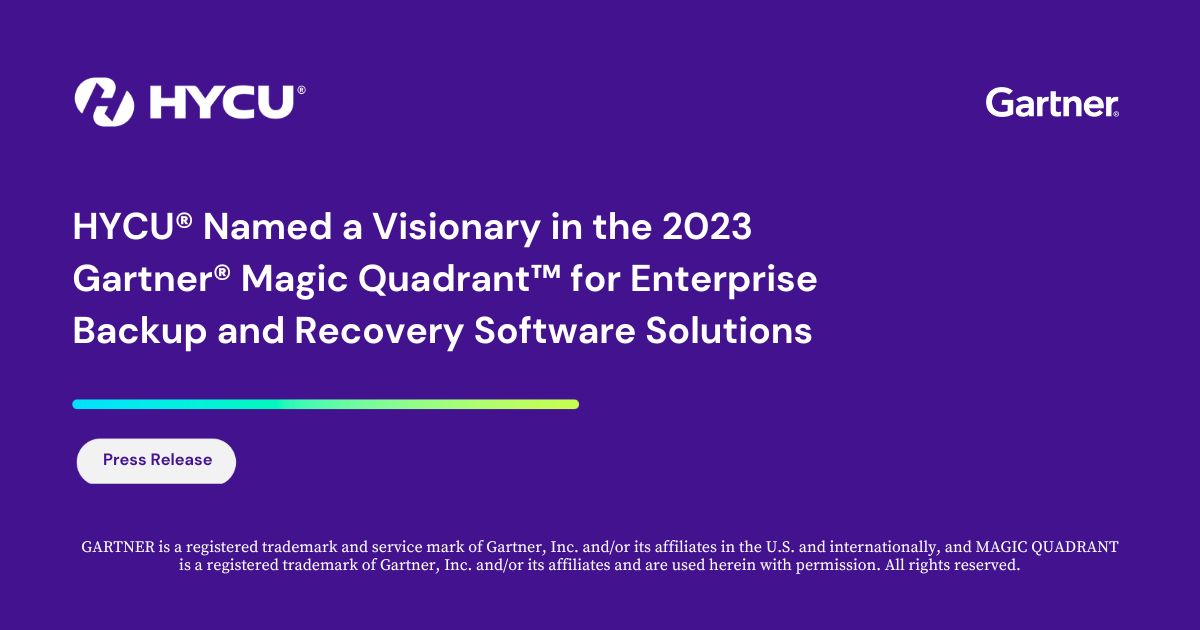 HYCU Named a Visionary in the 2023 Gartner Magic Quadrant for Enterprise Backup and Recovery Software Solutions