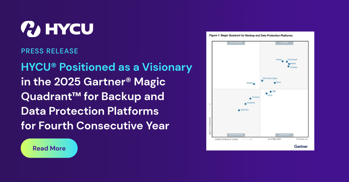“Being recognized as a Visionary reflects more than just innovation, it symbolizes alignment with what today’s IT leaders urgently need,” said Subbiah Sundaram, SVP of Product at HYCU, Inc. “As data estates grow more fragmented across SaaS, cloud, and hybrid environments, our focus at HYCU remains clear: deliver complete visibility, simplified protection, and freedom to choose the storage that best fits your business needs. With R-Graph providing real-time insights into coverage gaps and generative AI accelerating infrastructure support for new SaaS and PaaS services, we’re redefining what modern data protection should look like. This acknowledgment reinforces our commitment to building solutions that are not only forward-looking, but fundamentally user-first.”