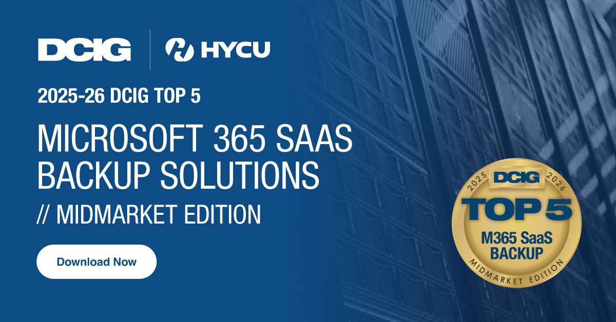 In this exclusive DCIG 2025-26 Solution Profile, HYCU for Microsoft 365 stands out as a TOP 5 backup vendor for midmarket enterprises, recognized for its powerful combination of security, automation, and flexibility.