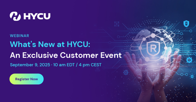 Check out HYCU at an event near you or tune in to one of our many virtual sessions to hear how you can protect, manage, and recover your multi-cloud data with ease.