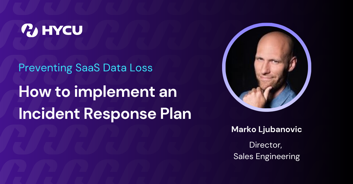 Join Marko Ljubanovic, Director of Sales Engineering, as he discusses the critical aspects of implementing an incident response plan specifically tailored to SaaS data protection. Explore the essential components of an effective incident response strategy and get practical insights on how to mitigate risks and minimize the impact of security incidents.
