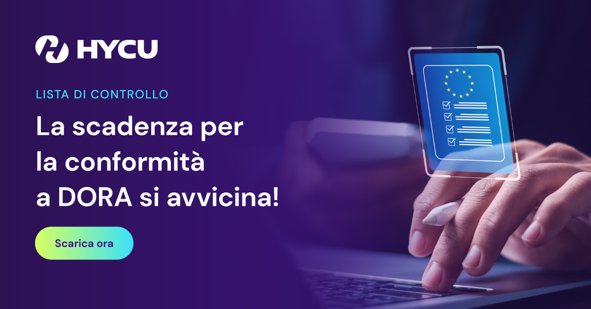 Questa lista di controllo vi guiderà attraverso gli obblighi di conformità DORA, fornendo un’overview passo dopo passo dei requisiti fondamentali relativi alla valutazione del rischio, ai backup, alla risposta agli incidenti, al ripristino dimostrabile e al reporting. Prendete il controllo dei vostri dati e scaricate la lista di controllo oggi stesso!