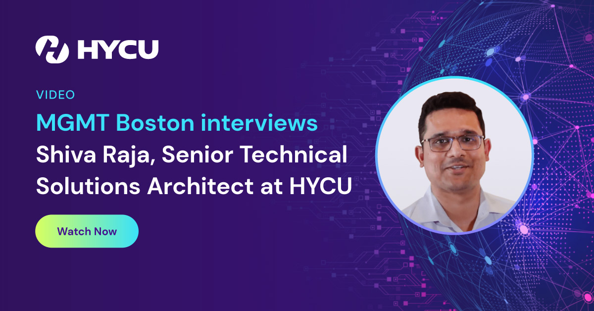 In this latest MGMT Boston spotlight, Shiva Raja, Senior Technical Solutions Architect at HYCU, is featured and he shares an inside look at what’s driving product and engineering innovation in 2025. With nearly 7 years at HYCU, Shiva has been at the forefront of our evolution, from launching the first purpose-built data protection solution for Nutanix to leading the charge on cyber-resilient data strategies.