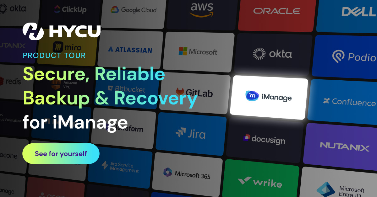 View the iManage backup product tour and see why leading firms choose HYCU.