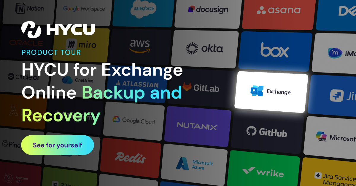 HYCU R-Cloud simplifies Exchange Online data protection, so your critical communications are always secure, searchable, and recoverable.