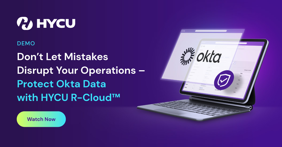 This guide walks you through the process of safeguarding your Okta Workforce Identity Cloud information using HYCU R-Cloud, a powerful backup and recovery solution. We'll explore how to configure Okta with HYCU, perform data restorations, manage backup policies, and set up secure storage targets. Whether you're an IT administrator or security professional, this tutorial will equip you with the knowledge to effectively protect your Okta data and ensure business continuity.