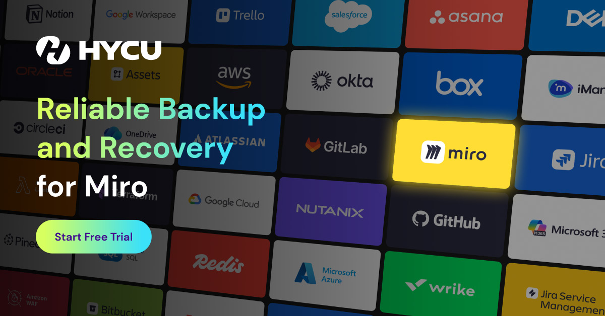HYCU offers a dedicated backup and recovery solution for Miro, ensuring that data stored in boards, frames, sticky notes, and collaborative elements is always protected and quickly recoverable.
