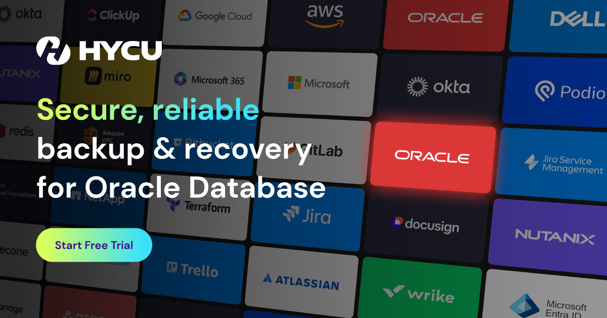 HYCU offers a purpose-built, agentless backup solution for Oracle Database, providing automated discovery, application-consistent backups, and granular recovery options. This approach minimizes performance impact on production databases, enables rapid restoration of specific tables or entire databases, and simplifies data protection across on-premises and cloud Oracle deployments.