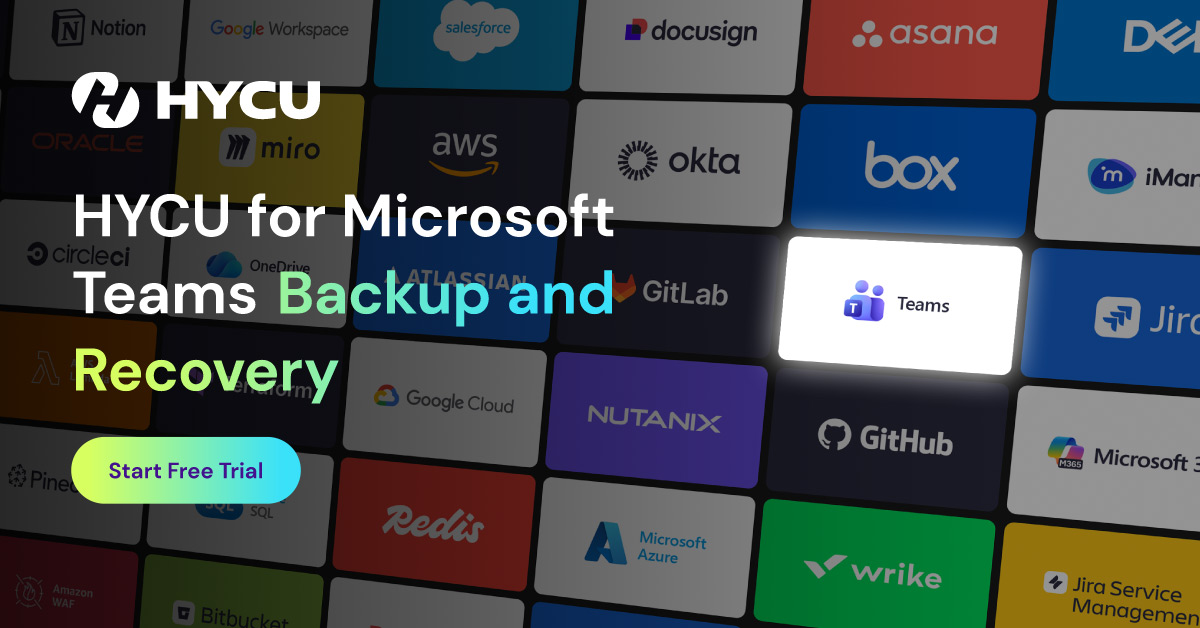 HYCU automates backup schedules and enables granular search and recovery of Teams data.